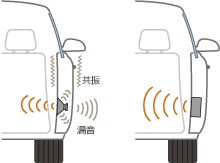 如图所示,普通车载扬声器是以车门内部作为容器直接安装在车门里的,也正因为如此,由于声波在车门内部发生共振,中低音的混浊不清几乎成了车载音响一个无法逾越的障碍。看似听的是车载音响,其实是车门在毫不客气地打扰我们的音乐盛宴。不仅如此,恼人的共振还是漏音的元凶,使得本就有瑕疵的音质雪上加霜。