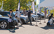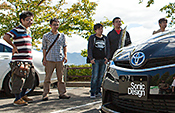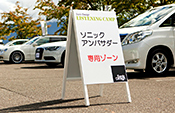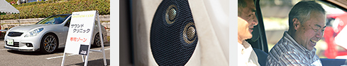 前回と同じく"ユルい"雰囲気を大切にした今回のリスニングキャンプ2では、ひとつ新しい企画をスタートさせました。それは「ソニックアンバサダーによる愛車試聴会」。ソニックデザインに対して人一倍アツい思いをお持ちの個人オーナーの方に、ソニックデザインの音の使節(アンバサダー)になっていただき、ご自身の愛車の試聴プレゼンテーションをしていただこうというものです。プレゼンテーションは販売店やメーカーのデモカーでスタッフがするように、アンバサダーが助手席または後席に座って、来場者のみなさんは1組ずつ運転席(1組が2名の場合は前席左右)に座って音を聴いてもらうというスタイルで行っていただきました。アンバサダーの人数(台数)は午前・午後各5台ずつの計10台で、各自の持ち時間は2時間。試聴がスムーズに進むよう選んだ曲をを適当な長さに編集したり、システム説明用のパネルを作成するなど、自慢のサウンドをしっかりアピールできるよう思い思いの配慮をされていたようです。