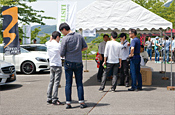 そして迎えた当日の午前10時、個人参加のお客様のクルマが会場に続々と入り始めました。場内は奥がショップデモカーのゾーン、中央付近がソニックデザインのデモカーとサウンドクリニックのゾーン、そして出入口に近い手前側が試聴デモ可能な個人参加車両のゾーンになっていて、試聴デモを行わない個人参加車両は隣接する一般駐車場へと案内されます。初回ということもあって、試聴デモ可能ゾーンに乗り入れることを躊躇されるソニックデザインユーザーの方も多かったようですが、ユルい雰囲気は会場の中も外もたいして変わりません。今回ちょっと躊躇しちゃったみなさん、ぜひ次回は「聴かせる側」も楽しんでくださいね。