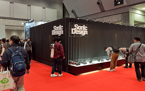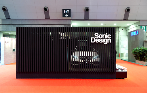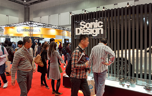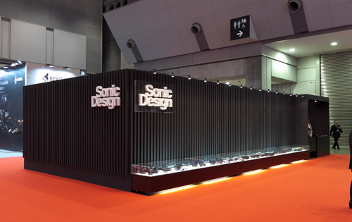 2013年11月23日(土)、「第43回東京モーターショー2013」の一般公開がいよいよ始まりました。弊社は西展示棟1階の「西1ホール」に、ソニックデザインブース「ザ スウィート ラウンジ」を出展。ボッシュ、コンチネンタル、マーレというドイツの名門企業のブースに囲まれて、おなじみの黒い縦格子が目印の「ザ スウィート ラウンジ」は、ソニックデザインのスピーカーと同様にコンパクトながらもサイズを超えた存在感で皆様をお待ちしています。ブース受付では77mmウーファーユニットの「SD-N77N型」を象った原寸大コースターを配布しているほか、ご希望のお客様にはソニックデザインの設計思想が凝縮された小冊子の「コンセプトブック」や製品カタログも用意しておりますので、どうぞお気軽にお立ち寄りください(数に限りがあります。品切れの際はご容赦ください)。