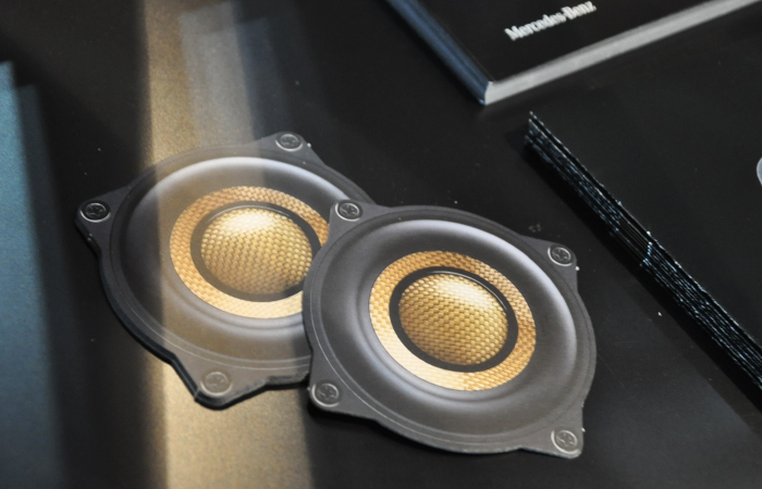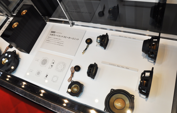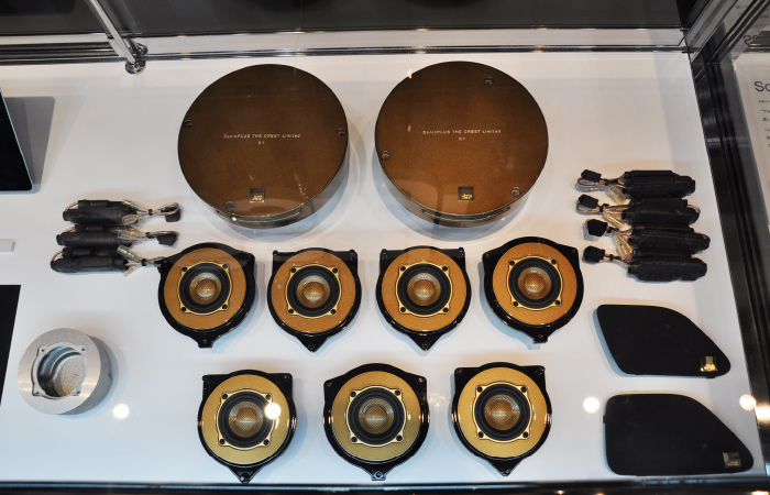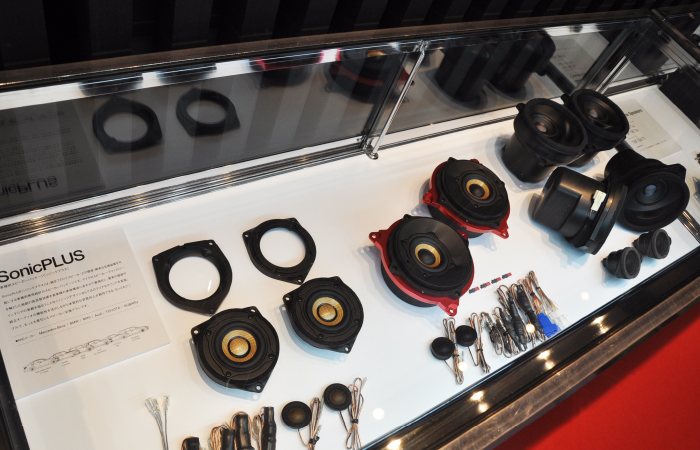 另外,与展台并设的展柜中展示着很多新产品。除上述SonicPLUS THE CREST系列外,梅塞德斯-奔驰S/E/C级专用扬声器套装SonicPLUS CUSTOM,宝马用升级版,丰田86用,斯巴鲁用等SonicPLUS产品也齐聚一堂。安装后就看不见的产品背后,散发出只有高品质品牌才有的质感。更会加深人们对声丽创音一贯倡导的「让喇叭更小更好」这一理念的理解。
