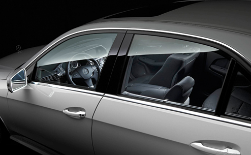 「E-Class Sound Suite」是由专为E级别开发的超全频扬声器「The Suite Unison-Array」(车前门用)和辅助低音扬声器「The Suite Extend-Woofer」(车后门用)共计六个扬声器组成的简易声音系统。将主要音域声音再生的全频前置扬声器,配合安置在车后方的辅助低音扬声系统,将双方音域的交叉点集中在低声部,消除了因为音声信号传送的时间差和方向错位导致的音质劣化。求精不求多,用最简单的结构带来最上乘自然的音响体验。