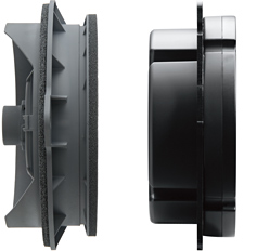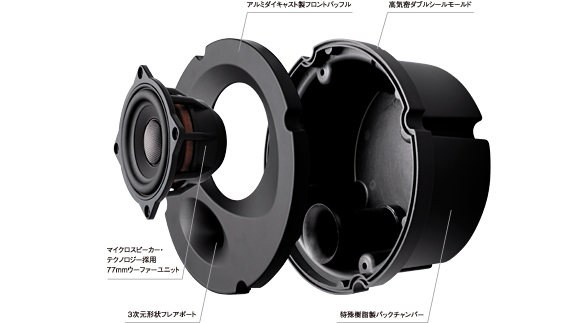 TBE-1877Tのドアスピーカーは、こうした純正スピーカーが抱える諸問題をまとめて解決する独創のエンクロージュア一体型。アルミダイキャスト製フロントバッフルと特殊樹脂製バックチャンバーを強固に結合した高剛性・低共振の高精度アルミハイブリッドエンクロージュアと小型高性能ウーファーユニットとのコンビネーションが、ドア内への音の放出や高速走行時の気圧変化などの影響をシャットアウトし、不快な共振やこもり音を抑えたクリアなサウンドを実現しました。もちろん、信号待ちや静かな住宅街などで気になる車外への音漏れも防ぎ*、良い音を安心してお楽しみいただけます。