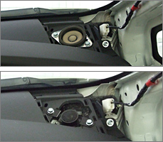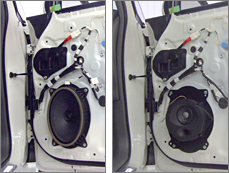 一般的なドアスピーカーはユニットの背面が開放され、ユニット前面とほぼ同じ大きさの音がドア内部にも放出されています。この方式はドア内部をエンクロージュア(キャビネット)として有効利用でき、構造も簡単なことから、ほとんどの純正ドアスピーカーが採用しています。ただ、自動車のドアはもともとスピーカー用のエンクロージュアとして設計されているわけではないため、ボディパネルや内装材が共振して中~低音の「濁り」や「こもり」が生じやすく、また聴いている音楽が車外へはっきり聴き取れるほど漏れてしまうなど、音質や快適さの面では問題点も少なくありません。さらに、走行中にドア内部で生じる気圧変化はスピーカーの正常な駆動を妨げ、高速走行時に音量を上げても音楽が耳に届きにくい原因となっていました。