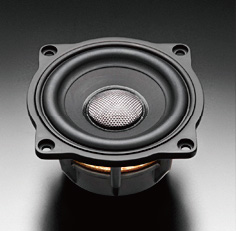 适配型的车门中低音单元,采用的是通过强度精细处理方式实施特殊表面处理的轻量超细纤维混纺聚丙烯振膜。通过DMF(Defined MicroFiber)音盆与添加了玻璃纤维中盖的组合,实现了在成本范围内达标声丽创音规定的77mm中低音高精度扬声器的基准。该单元继承上级单元的铝压铸框架,尼龙中盖,驱动系统等基本式样,使小口径特有的干净清晰音质和超出口径级别的宽频播放成为可能。