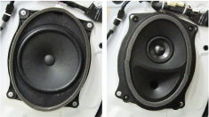 安装在前门的原装喇叭(左图)和埃尔法/威尔法(30系)专用中低音扬声器(右图)的安装例