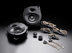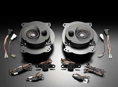 前声场专用中低音扬声器,采用最大限度利用原装车门喇叭安装空间的椭圆形高深度大容量铝压铸+树脂结构密闭一体型音箱。在实现SonicPLUS最大级别内容积密闭一体型的同时,通过抑制引起音质劣化的内部定在波,获得丰富自然的中低音。后门中低音单元的密闭一体型音箱,采用薄型紧凑型箱体。所有的密闭一体型音箱都实施了与其喇叭单元特性相符的调音,使之与前声场喇叭的综合平衡达到最佳。