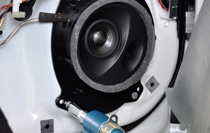そこでソニックプラスセンターでは、クイックピットでの取り付けをご依頼いただいたお客様を対象に、SonicPLUS製品の初期エージングサービス*2を提供しています。このサービスは、ご注文のSonicPLUS製品(スピーカー)を専用のエージング台に装着して規定時間の初期エージング処理を行った後、お客様の車両に取り付けるというもので、初期エージングが完了した状態のSonicPLUSとともに車両をお引き渡しすることができます。新品時からの初期エージングを適切な方法で行うことで、納車時点から一定水準の音質でお楽しみいただける*3ほか、思わぬトラブル(たとえば新品状態のユニットに過大な音量を印加すると磁気回路や駆動部などに大きなダメージを与える恐れがあります)の防止にもつながります。